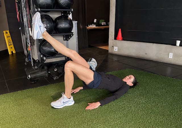 Goal 1 - 1 minute straight with single leg hip extension the other leg going through: