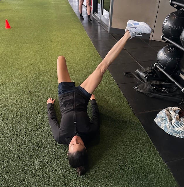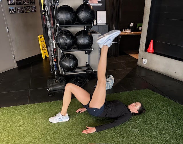 I’m getting an isometric hold (Stability) with one side as it’s keeping you up, and then mobility on the other side as it’s going through the kicks. The extensions, then kicks up/down, out to the side, and then 5 circles each way is about 1 minute. Try it and feel the burn.