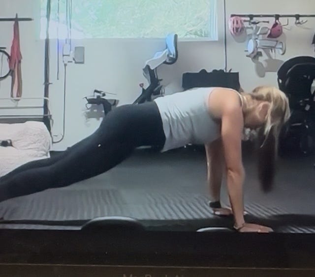 An ultimate test of shoulder and core strength. I add a block on the back to make sure the hips aren’t dipping.