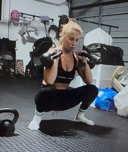 (He’s doing a single arm bottom’s up squat. Pretty advanced and the ultimate in core control, grip strength, and strong posture.)